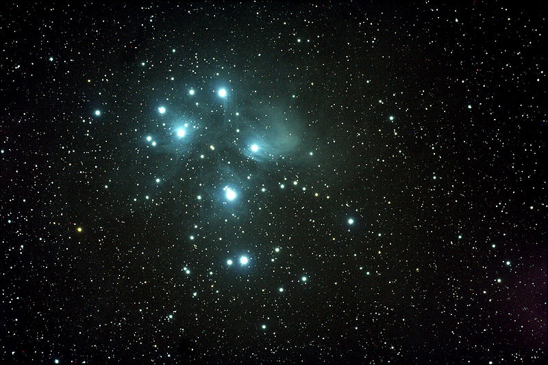 Omero, Tolomeo e altri autori dell’età classica si sono ispirati e hanno citato le Pleiadi, vero è infatti che, proprio grazie alla brillantezza e alla posizione non eccessivamente distanziata, esse sono note sin dall’antichità. Si tratta di un ammasso giovane (circa 100 milioni di anni) con un’aspettativa di vita di soli altri 250 milioni di anni, causata dalla bassa densità, distante da noi 135 parsec e cioè 440 anni luce (quindi piuttosto vicino). Esso conta un numero modesto di stelle visibili ad occhio nudo, anche se in realtà, dalle fotografie, si evince che tutte le componenti sono circondate da leggere nebulose a riflessione.